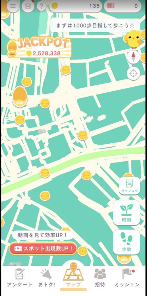 歩くだけじゃあなくて、ポチポチするだけでもコインが貯まるというのは面白いですねー。