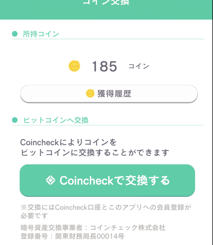 正確には、歩いたりスマホをポチポチするとアプリ内のコインが増えます。